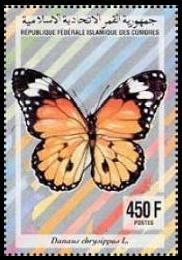 コモロ諸島の昆虫切手コモロ諸島は、東アフリカとマダガスカル島の間の西インド洋上にあり、16世紀以降、奴隷貿易の中継基地でしたが、19世紀にフランスの保護領となり、1947年以後マダガスカルの一部とフランスの支配下に入りました。1975年に独立し国名をコモロ・イスラム連邦共和国としました。ただし、国家を構成する4島のうちイスラム教徒が多い3島では独立派が多数を占めましたが、キリスト住民投票でフランスに残留する決定をしたことから、見切り発車での独立でした。独立後はクーデターの連続で、1997年になって経済の混迷を理由に、独立した3島のうち2島でフランス再併合、および分離独立を求める機運が高まっており、政情は不安定になっています。