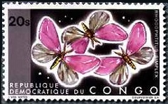 コンゴ民主共和国の昆虫切手1960年にベルギー領の植民地からコンゴ共和国として独立し、1967年にコンゴ民主共和国に改称、クーデターが起き1971年に国名をザイール共和国にし革命人民運動の一党独裁制を敷いたが、1997年にコンゴ・ザイール解放民主勢力連合が制圧し国名をコンゴ民主共和国に戻しました。