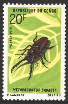 コンゴ共和国に国名を戻した1991年に、甲虫を描いた切手4種が発行されました。