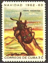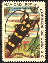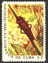 このキュ−バから昆虫切手として、博物学者フェリッペ・ポエイ記念で蝶を描いた切手4種が1958年に、昆虫を描いたクリスマス切手5種が1962年に、ミツバチを描いた通常切手5種が1971年に発行されました。