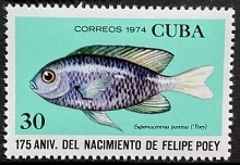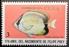 In 1974, six stamps were issued to commemorate the 175th anniversary of the birth of the naturalist Felipe Poei. Two of them feature fish, while the other four feature butterflies and shellfish. Five kinds of extinct birds stamp were published in same 1974. Four kinds of deep-sea fish stamp were published in 1998. Four kinds of stamps which it drew an animal and plant made specially in Cuba on were issued in 2003.