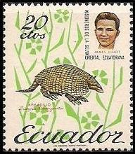このエクアドルから1965年に動物とその発見者を描いた切手4種が発行されました。