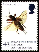 1998年にイギリスから発行された「絶滅の危機に瀕する動植物切手」6種の中に、コオロギやバッタと同じ目に属するケラを描いた切手が含まれています。