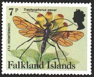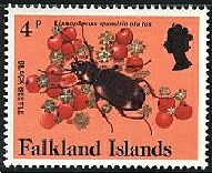 この英領フォークランド諸島から1984年に15種の通常切手が発行され、そのうちの12種に昆虫が描かれています。