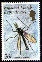 このフォークランド諸島属領から1982年に昆虫3種と、蜘蛛やダニ3種の、計6種セットが発行されました。南極のような極地の近くにも昆虫が生息しているのです。