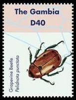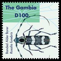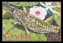 ガンビアの昆虫切手ガンビアはアフリカ大陸の西端にある、国土1万km2、人口100万人の国で、大西洋に面する一部を除きセネガルに囲まれています。1821年にイギリスの植民地となり、その後100年以上に亘って奴隷貿易の基地としてイギリスの支配下に置かれました。1965年に独立を達成し、1970年に共和制に移行しました。