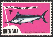 1975年に海洋上でのゲームフィッシングの魚類を描いた切手8種がグレナダから発行されました。