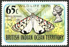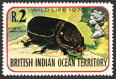 英領インド洋地域の昆虫切手英領インド洋地域から1976年に4種の昆虫切手が発行されました。英領インド洋地域は、チャゴス諸島を中心としたインド洋上の約2300の島々を含む地域でイギリスの海外領土で、昆虫の棲息分布による区分けでは東洋区に属します。面積220平方キロ、人口3500人。
