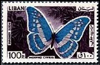 レバノンの蝶蛾切手レバノンは、紀元前3000年にフェニキア人によって開かれ古い歴史を持つ国ですが、ペルシャ、ローマ帝国などの支配を経た後、7世紀以降ビザンチン帝国の侵略を受けイスラム化がなされました。16世紀以降はオスマン・トルコの支配下に入りました。第一次大戦後はシリアの一部としてフランスの委任統治領となり、1926年にシリアから分かれて共和自治政府を樹立し、1943年に独立を宣言。駐留していた仏軍は1946年に撤退しました。
