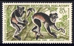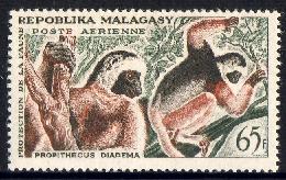 このアフリカの南東に浮かぶ大きな島国マダガスカルから1961年に猿を描いた美しいザンメル凹版の通常切手3種と航空切手3種が発行されました。