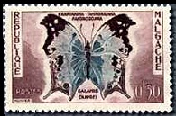 このアフリカの南東に浮かぶ大きな島国マダガスカルから1960年に美しい凹版多色刷りの蝶切手8種が発行されました。