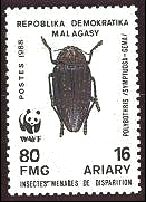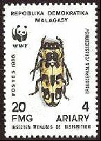 1988年に世界自然保護基金への寄付金付き甲虫切手4種が発行されました。