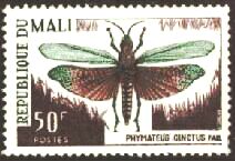 マリから1964年に防蝗宣伝切手としてトノサマバッタを描いたもの3種が発行されました。