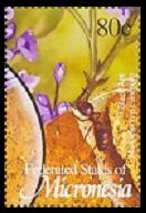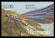 このミクロネシア連邦から2002年に、昆虫5種と蜘蛛1種を描いた6枚の切手を含む小型シート1枚が発行されました。同時にトンボ1種を描いた切手1枚の切手を含む小型シート1枚が発行されました。