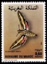 モロッコの昆虫切手モロッコはアフリカにあっては珍しく政情が安定した王国で、17世紀には現王朝のルーツであるアラウィー朝が成立しました。1912年に国土の大半がフランスに北部地域はスペインに分割され、56年に独立にいたり57年にはモロッコ王国と改名しました。
