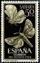 1964年と1965年にスペイン領サハラから昆虫切手が発行されました。単色ですが生態的に奇麗に描かれています。