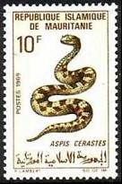 このモーリタニアから1969年に爬虫類を描いた切手5種が発行されました。その後1977年に動物切手5種が発行されました。翌1978年にも動物切手6種が発行されました。