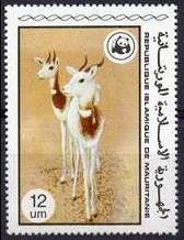 モーリタニアの動物切手モーリタニアは日本の約3倍の国土を持つが大半はサハラ砂漠で陸地面積に占める耕地面積の割合は1%です。北アフリカの先住民ベルベル人が10世紀頃から遊牧を始め、17世紀以降はヨーロッパ人の進出が本格化し、1903年にはフランスの保護領が確定しました。1958年にフランス共同体内の自治国となり、1960年に独立しました。ただし、1978年にクーデターが発生してから90年代まで軍政下にありました。1992年に複数政党制による大統領選挙が行われ、以降民主化が定着しつつあります。