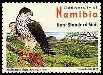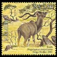 2001年にナミビア中央高原の動物7種と昆虫1種を描いた切手8種から成る小型シートが発行されました。