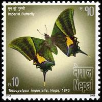 ネパールの昆虫切手ネパール王国は、中国とインドに挟まれ、ヒマラヤ山系のエベレスト、ダウラギリ、マナスル、アンナプルナなど8000mを超える山々を抱え、釈迦生誕地にしてヒンズー教国家です。ネパール王国のルーツは、1769年にグルカ族がシャー王朝として国を統一したことに拠ります。1814年から1816年に翔けての英国との戦争に敗北し、現在の国境まで後退しました。19世紀中頃から約100年間は、英国の支援を得たラナ家一族による先生政治下に入り、王政復古は1951年です。1955年に国王に即位したマヘンドラ国王は、1960年に政党活動を許していた憲法を廃止し、新憲法を1962年に制定し、1972年にビレンドラ国王に引き継ぎました。1990年に民主化要求が強まり1991年に約30年ぶりに総選挙が実施され、1998年にはコイララ首相が誕生しました。