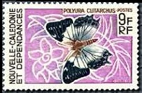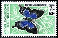 ニューカレドニアの昆虫切手ニューカレドニアは南太平洋上にあり、日本の四国と同程度の面積のグランドテールとイル・デ・パン、ウベア、リフー、マレの5島とその他の小島から成り、メラネシア人やポリネシア人が昔から住んでいました。1774年にイギリス人クックがグランドテール島を発見しニューカレドニアと名付けました。その後、フランス人ラ・ベルーズが訪れ、多くの宣教師も訪れ、1853年にナポレオン3世が仏領であると宣言しました。1887年までフランスの政治犯の流刑地でした。1946年に仏領の植民地からフランス海外領土に認められ、フランス共和国の一部でありながらニッケル鉱業と観光業を主産業として自治権を保持しています。