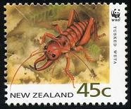 1993年に世界自然保護基金への寄付金付き動物切手5種が10枚セットのブックレットとして発行され、この中に巨大カマドウマを描いたものが含まれています。