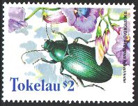 このトケラウ諸島の通常切手として、甲虫を描いたものが1998年に発行されています。