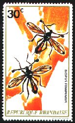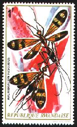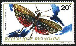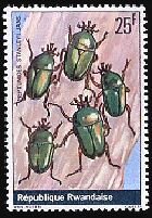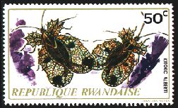 ルワンダの昆虫切手ルワンダは15世紀に遊牧民のツチ俗が先住民のフツ族を支配し王国を建設し、19世紀末にはドイツ領東アフリカの一部となり、ベルギーの統治を経て1962年に共和国として独立しました。独立後フツ族支配が続きツチ族に対する虐殺事件が発生しました。1994年を境にウガンダなどに逃れていたツチ族勢力が反撃を開始し全土を掌握して様相は一変しフツ族がザイール、タンザニアなどに脱出しました。難民キャンプでのフツ族虐殺事件も起きています。