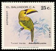 中南米のエルサルバドルから、1980年に鳥類を描いた通常切手2種と航空切手3種が発行されました。中南米特産の鳥類が綺麗に描かれています。1993年、1998年には鳥類切手が各々4種、6種発行されました。