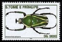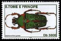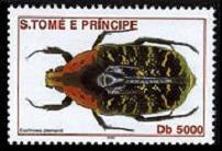 サントメ・プリンシペの昆虫切手サントメ・プリンシペは、西アフリカに位置し赤道直下のギニア湾上に浮かぶサントメ島およびプリンシペ島からなります。無人島だったこれらの島に1470年にポルトガル人が上陸し、以後、ポルトガルは16世紀初頭に植民地として支配を及ぼすと、バンツー系黒人を中心に強制的に移住させ、サトウキビ栽培に従事させると共に、奴隷貿易の中継基地としました。1951年にポルトガルの海外州になり、1975年に独立しました。独立後は、1党独裁下で旧ソ連寄りの政策をとりましたが、1990年には1党独裁を放棄し複数政党制を導入すると共に親欧米路線に転換しました。