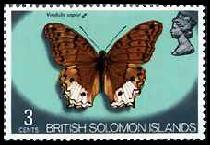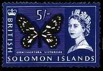 このソロモン諸島から1965年に発行された通常切手の中に昆虫を描いた切手1種が含まれていました。