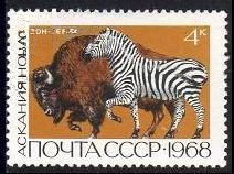 このソビエト連邦から1968年に、動物を描いた自然保護切手6種が発行されました。