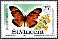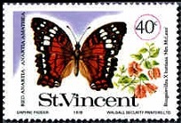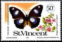 このセントビンセントから1978年に蝶切手5種が発行されました。翌1979年に花と昆虫切手5種が発行されました。