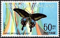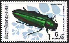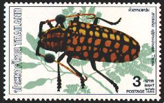 タイの昆虫切手タイは、インドシナ半島の中央部に位置し、東南アジア地域で唯一、欧州列強の植民地支配を免れた国です。元首に国王を頂く王制国家で、13世紀のスコタイ王朝、14世紀のアユタヤ王朝を経て、1782年にチャクリ王朝が創設され、1932年には正式に立憲君主国家となり、現在に至っています。国名はかってはシャム(SIAM)でしたが、1949年にタイ語で「自由な国」を意味するタイ(Thailand)に改められました。この名称は東南アジア諸国が欧州列強の植民地となる中でタイが独立を保ったことを示しています。