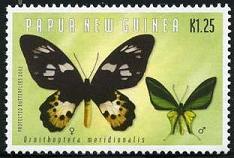 | ヒレオトリバネアゲハ Ornithoptera meridionalis ♀♂ (アゲハチョウ科) |