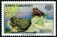 このトルコ共和国から、1990年に「地球環境の日」の切手として両生類を描いた切手4種が発行されました。