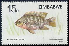 このジンバブエから1989年に6種の魚類切手が発行されました。1994年にも6種の魚類切手が発行されました。