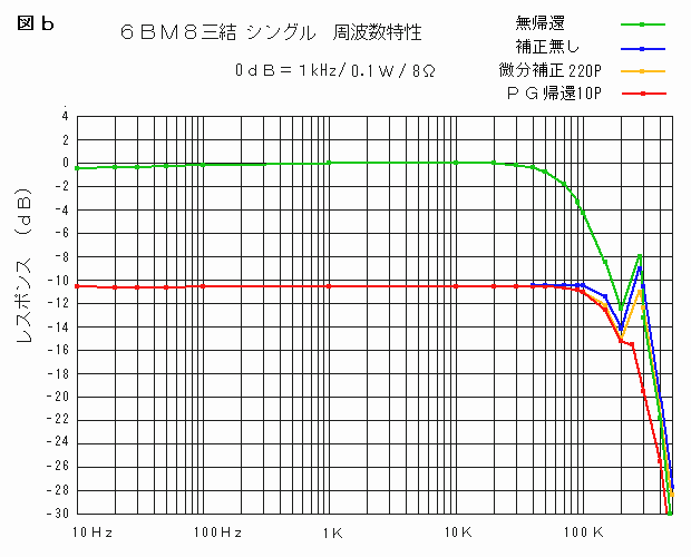低域を伸ばす為に初めから負帰還を掛けていたので、当初は前段の高域カットオフと出力段のカット
