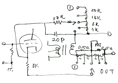 反転段に12AT7A、出力段に50HB26という構成で、入力0.2V以下で30W近いフルパワー
