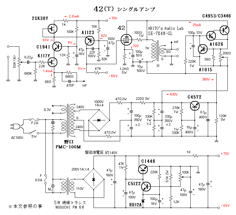 以上のように、本機は特別なOPTをARITOさんに頒布して頂き、回路はめのさん自筆の解説ノート