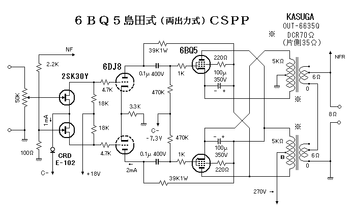 b.他方の春日のOPTは「5k:8Ω」なので2次側並列では変らず「5k:8Ω」で、