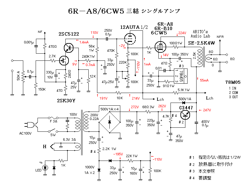 りません。しかし今回のアンプでMT三極管による出力3Wのアンプが実現出来たら、あの6R−A8の再