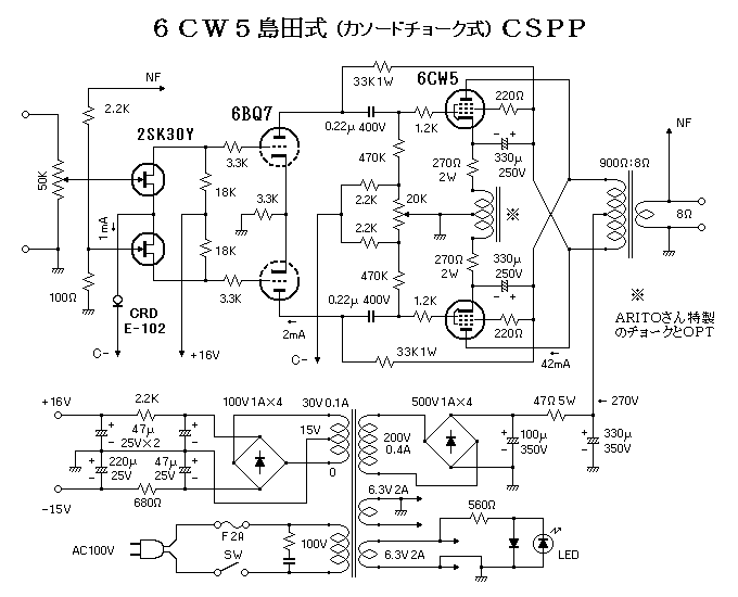 島田式CSPPの特徴はカソードチョークを使うことで、このチョークはOPTと電磁結合されていな