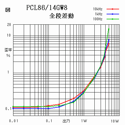 どの辺りの周波数がその分かれ目になるのか気になるところです。そこで上記の歪率カーブの他に