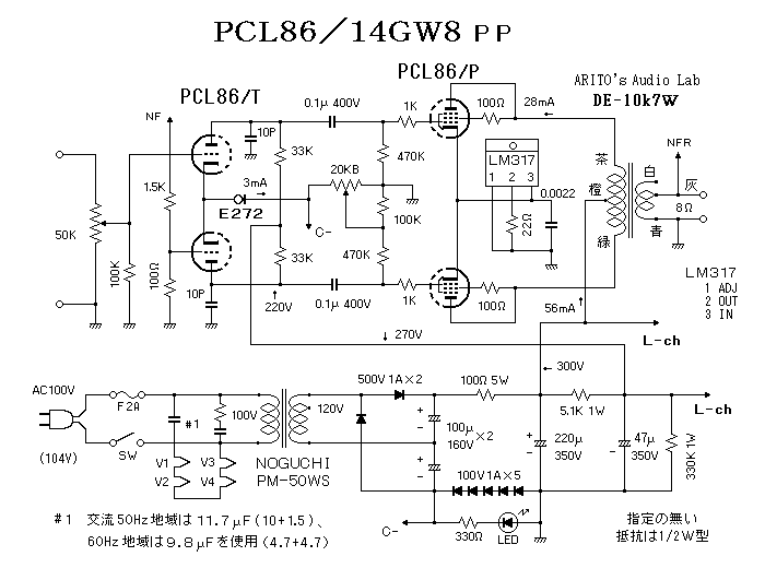既に何度も述べていますが、今回の14GW8での高域発振はかなり手ごわくLM317にCを