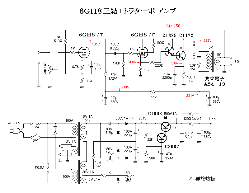 スターにもっとhfeの高い合わせを選べば6U8Aでも良いのでしょうが、あまりhfeが高いと不安定