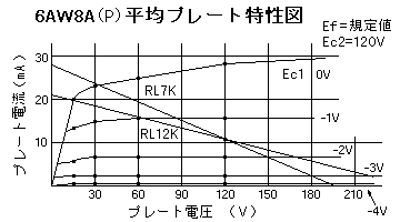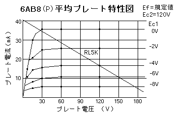 始めからテレビ用の出力管として設計された球だけあって、肩特性も良好で負荷抵抗もgmも平均的な値