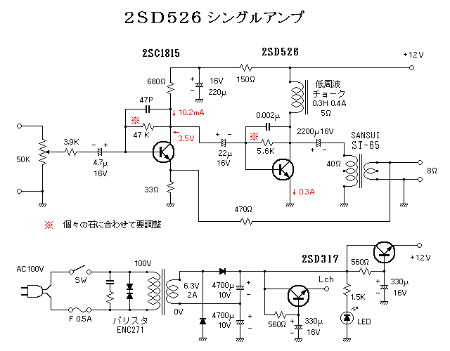 その他の特徴としては、二段アンプの前後とも自己バイアスとして回路の簡略化に務めています。