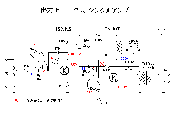 ただ出力段がチョーク負荷なので本来なら自己バイアスでは電流サーボが効かないのですが、今回
