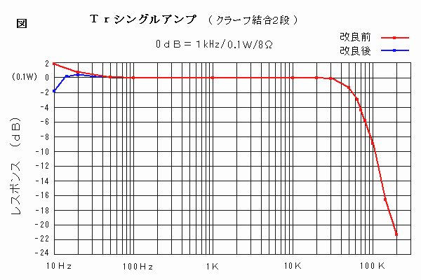 いう特性が得られました。もう少し高域を伸ばそうと出力段の補正容量を減らしてみたのですが、ざ